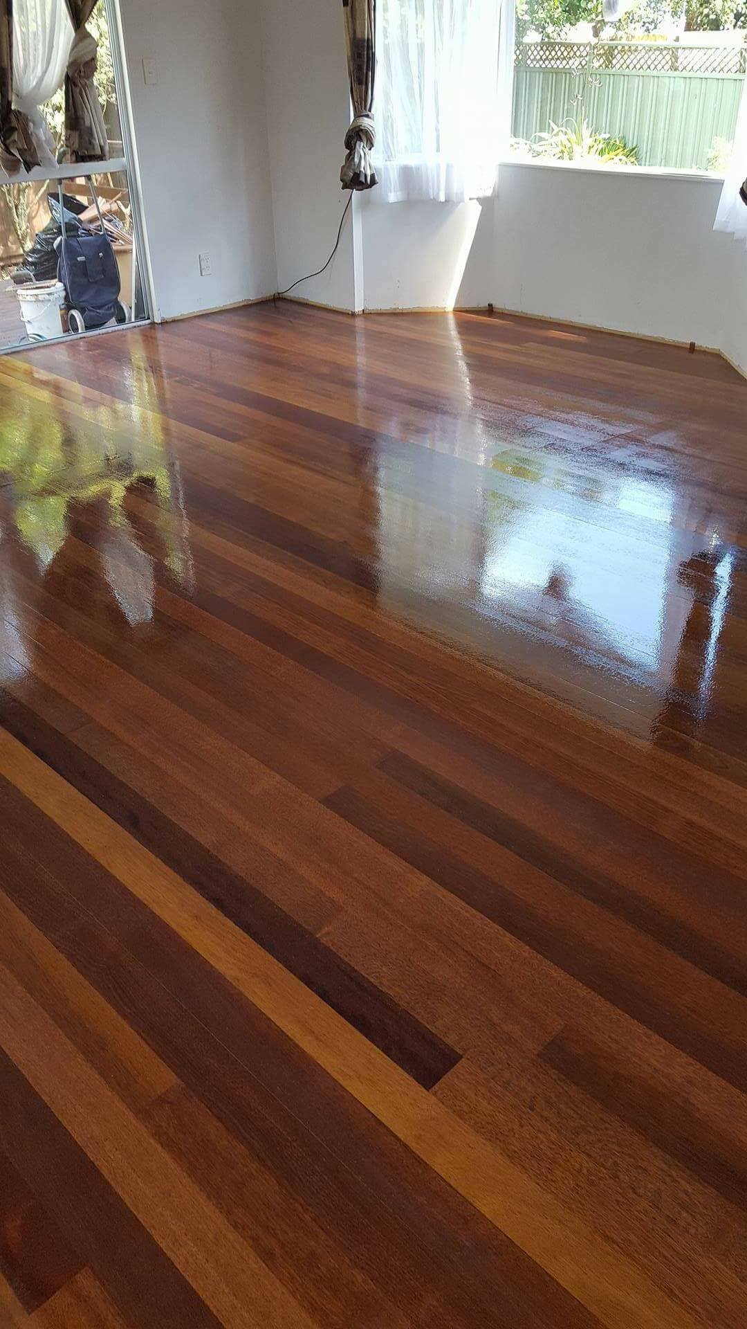 The best finish we would recommend if living or renting your house is a matte finish, also known as lo-sheen. A Satin finish will give you the same look but with a Gloss finished floor, they give off glare, and you will be cleaning the floor non-stop.